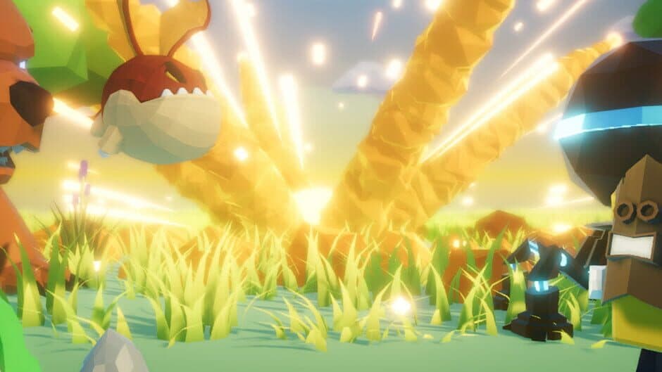 The Defender: In this form, your Kritter fights in melee combat with a sword. It can leap into the air and crash down on groups of enemies. The Defender can also build a scarecrow to distract and lure monsters wherever desired. The Defender is sturdy and can construct solid stone walls.