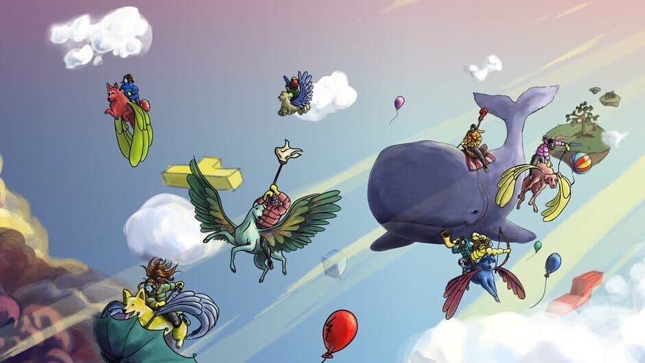 In Flock of Dogs, ride flying dogs that live on a flying whale. Together with your friends, go on a hand-drawn, procedurally-generated, Dr. Seussian, roguelike road trip through the sky. Co-op multiplayer for 1-8 players online and/or locally. There's also a bunch of minigames.