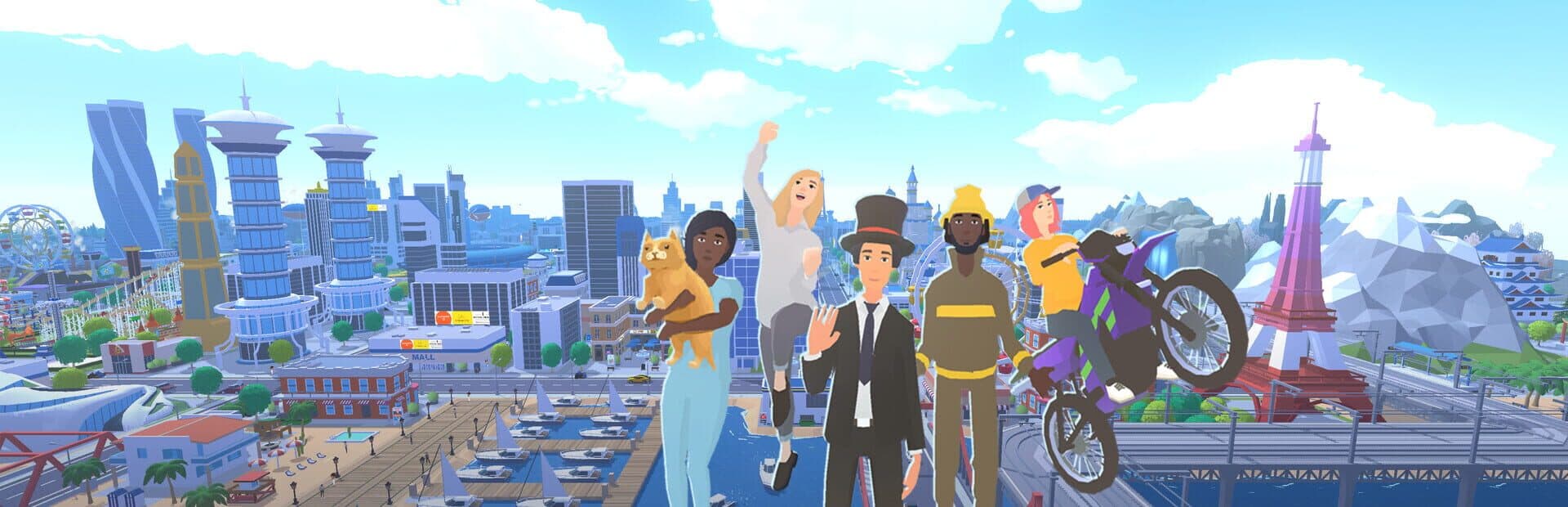 Step inside your city as your custom avatar and roam freely! Walk through neighborhoods, interact with NPCs, and discover loot scattered around town. Drive through your streets, visit interiors, and experience your city in a new way with a full day-night cycle and seasonal changes.