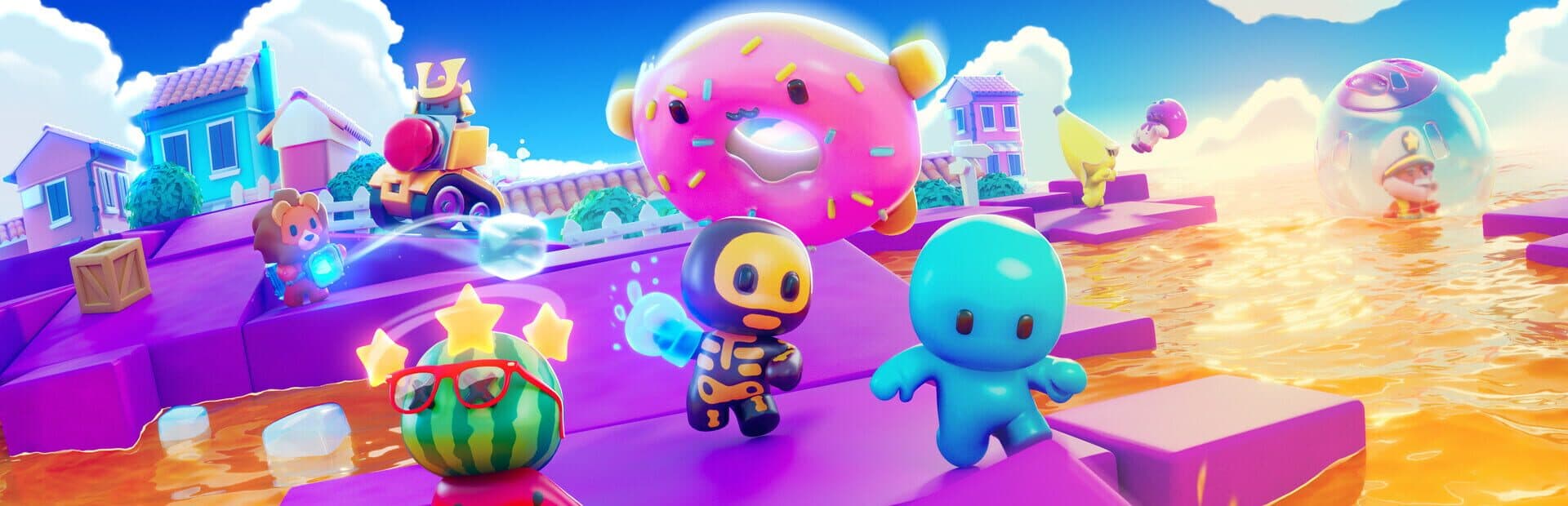 Fly in on Captain Punch’s Sky Yacht, get bopped into the arena, and find powerful and ridiculous Gadgets to battle with. With constantly changing game modes, get ready to mix it up with your friends, from eating cupcakes to being the last Punchie standing. But not everything is winning. You’ll also want to look good while doing it.