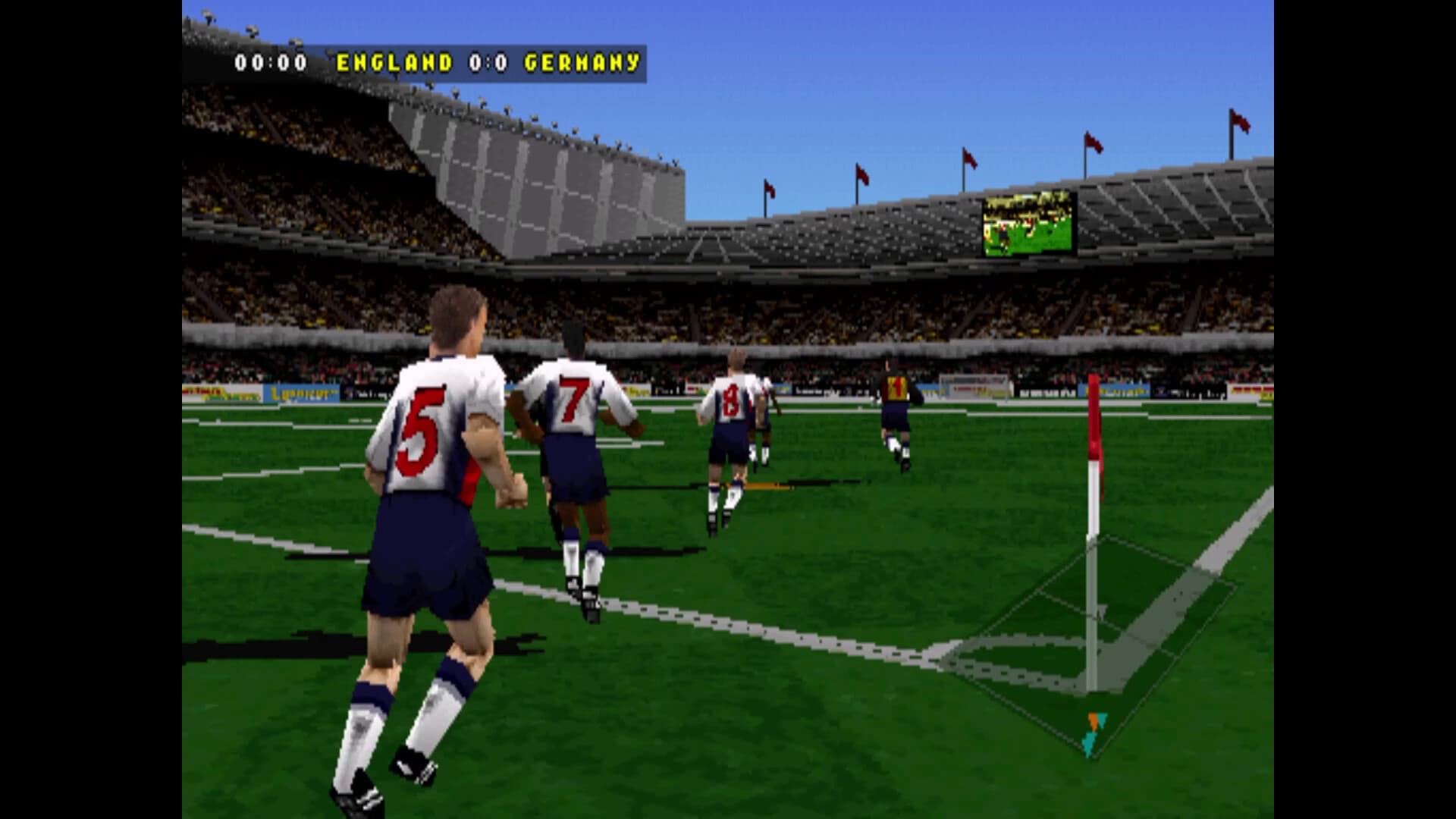 In this classic soccer simulation from 1997, experience fast-paced action with a variety of game modes, from friendlies to seasons. Play with one of 11 national teams, Alan Shearer's hand picked All Star team, or your own custom team. Features motion capture from a young Michael Owen.