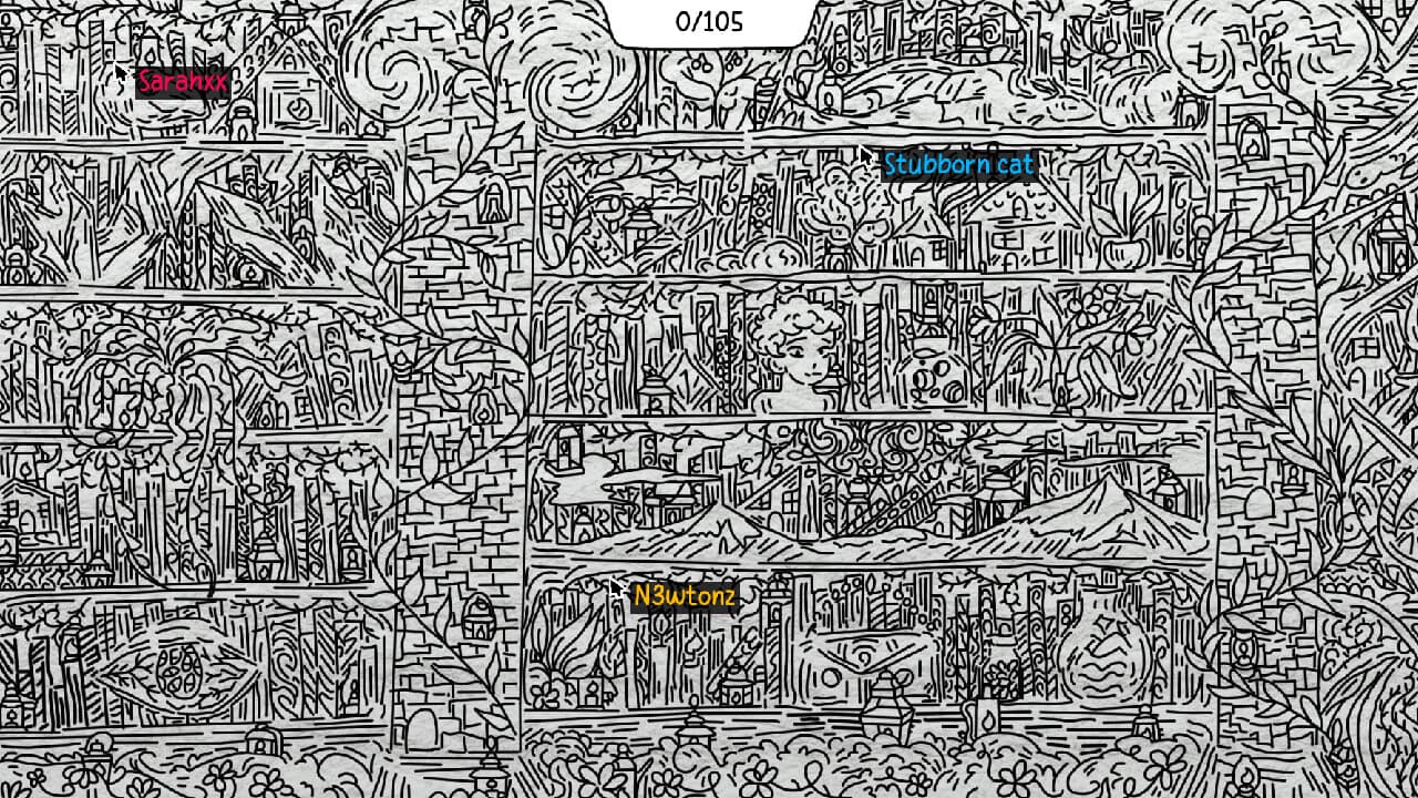 Search an incredibly detailed hand-drawn environment for lanterns. When you find one, click it to mark it as yours. The game is won once everything has been found, and a scoreboard will be displayed showing who found what. No time limit, just you and your friends. Singleplayer is available too!