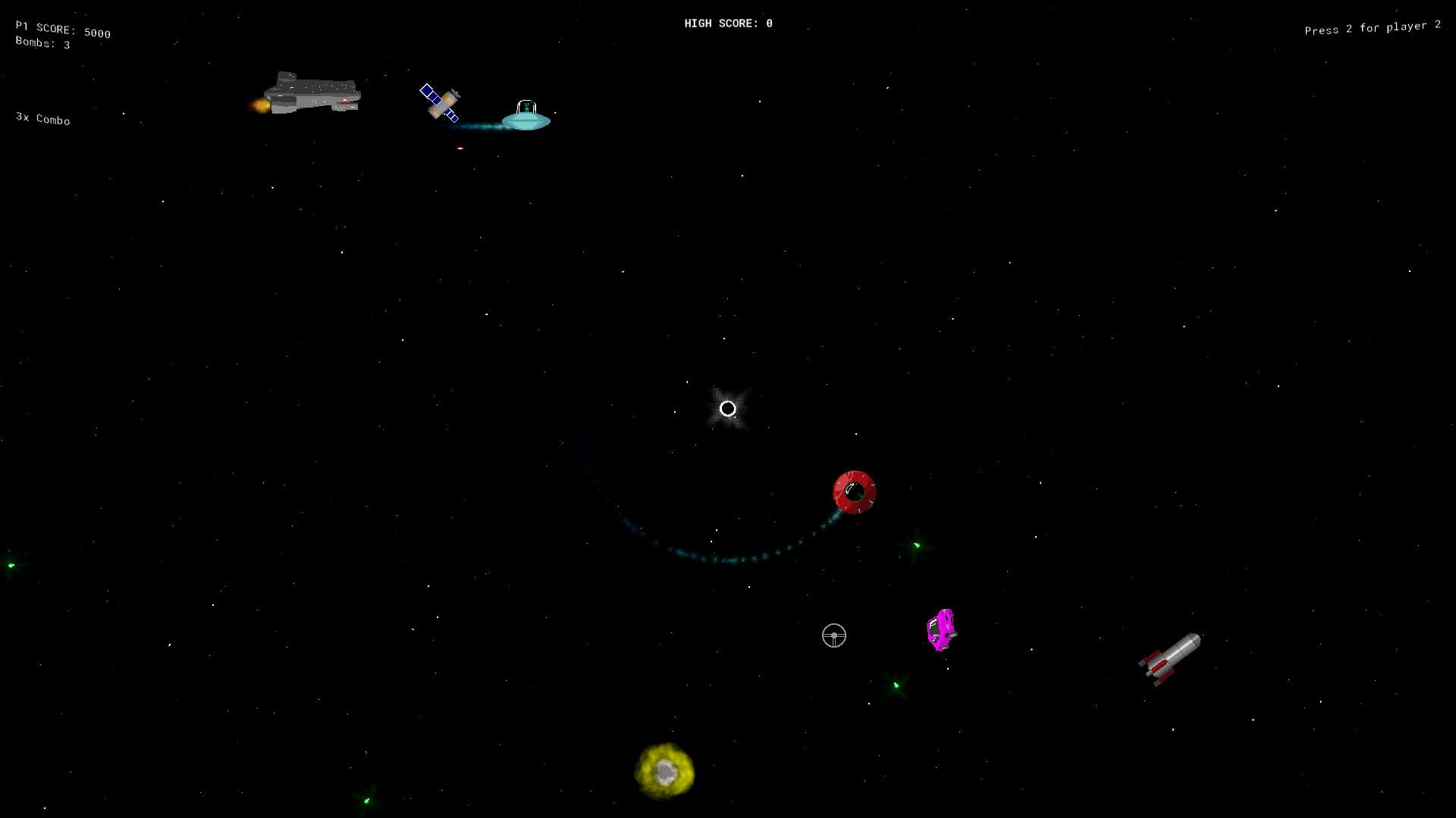 It's up to you to defend the universe for as long as possible to stop Collapsion from happening. Your trusty anti-matter blaster and a slew of emergency bombs will have to do for now but several upgrades can be obtained along the way.