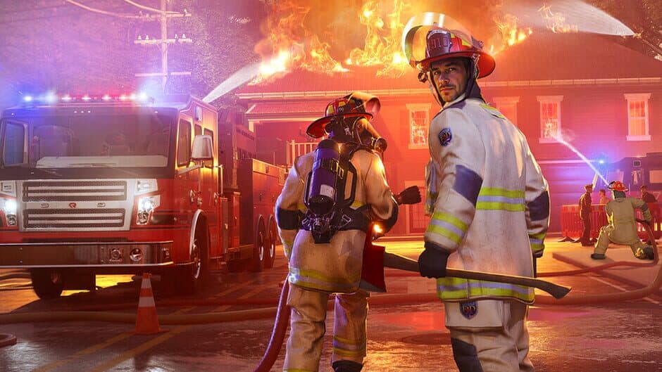UNITED AGAINST FIRE. Face unpredictable dangers head-on, fight perilous fires with your crew, and save lives in Firefighting Simulator: Ignite. Step into the boots of a U.S. firefighter in a sprawling city in the American Midwest, where every mission pushes your skills to the limit. Experience the rush of firefighting in stunning visual quality in an intuitive and cooperative multiplayer mode with 3 friends or with the help of your NPC controlled crew. Battle raging and dynamic flames, heat, and smoke – all simulated in real time. Cutting-edge physics & graphics systems powered by Unreal Engine 5 let you experience firefighting immersion like never before.