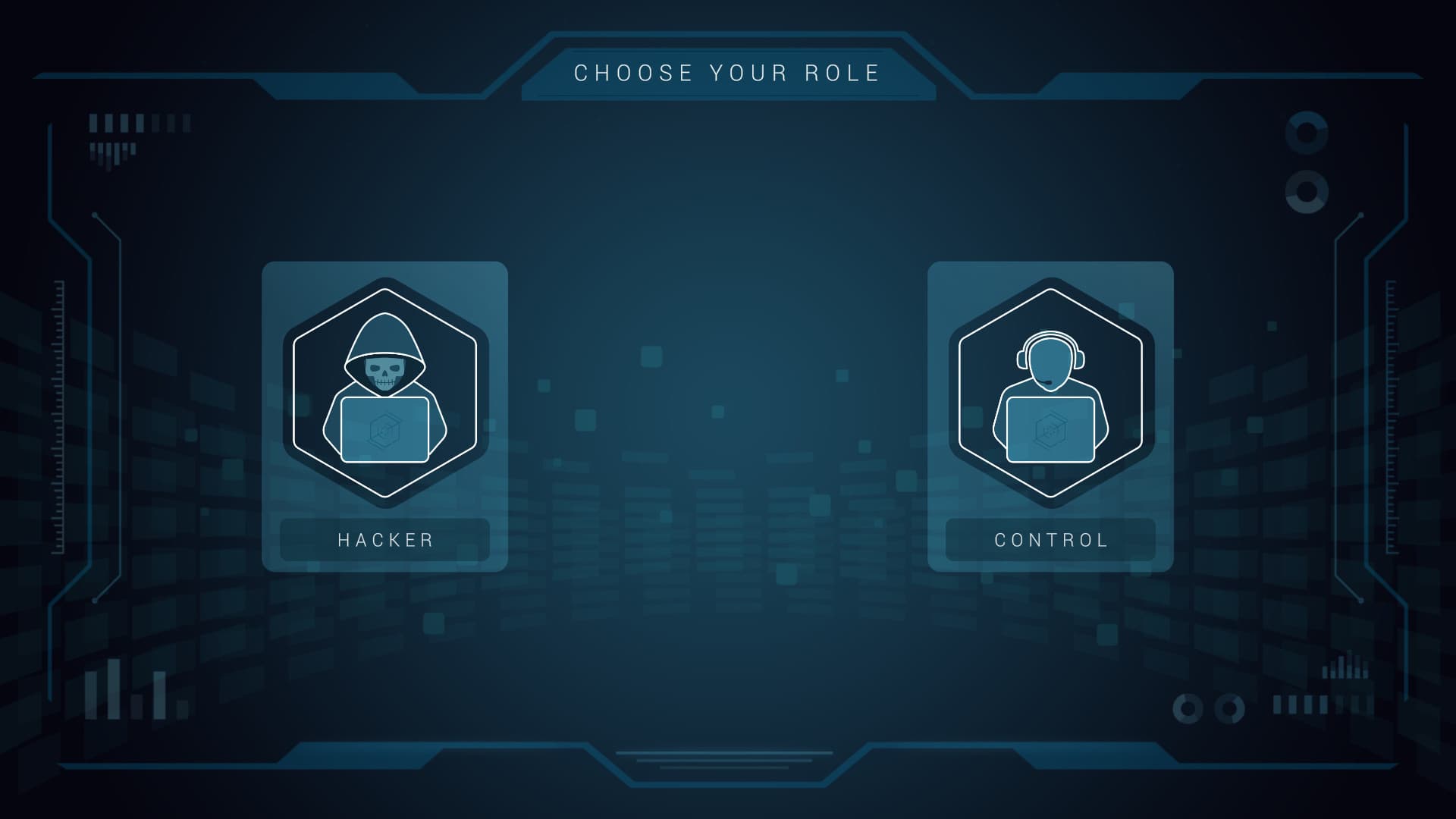 As Control, you are the brains of the operation. Staying in a remote location, you won't have a direct visual of the bank's security, but you will have access to the tools that the Hacker needs in order to penetrate the database. You are responsible for safely guiding the Hacker past security measures, and into the victim's system. Wrong instruction relayed to the Hacker may result in their imprisonment. Find out what the hacker is able to see, and with that information you will be able to unlock vulnerabilities in the system, and then relay instructions back to the hacker on how to bypass security measures.