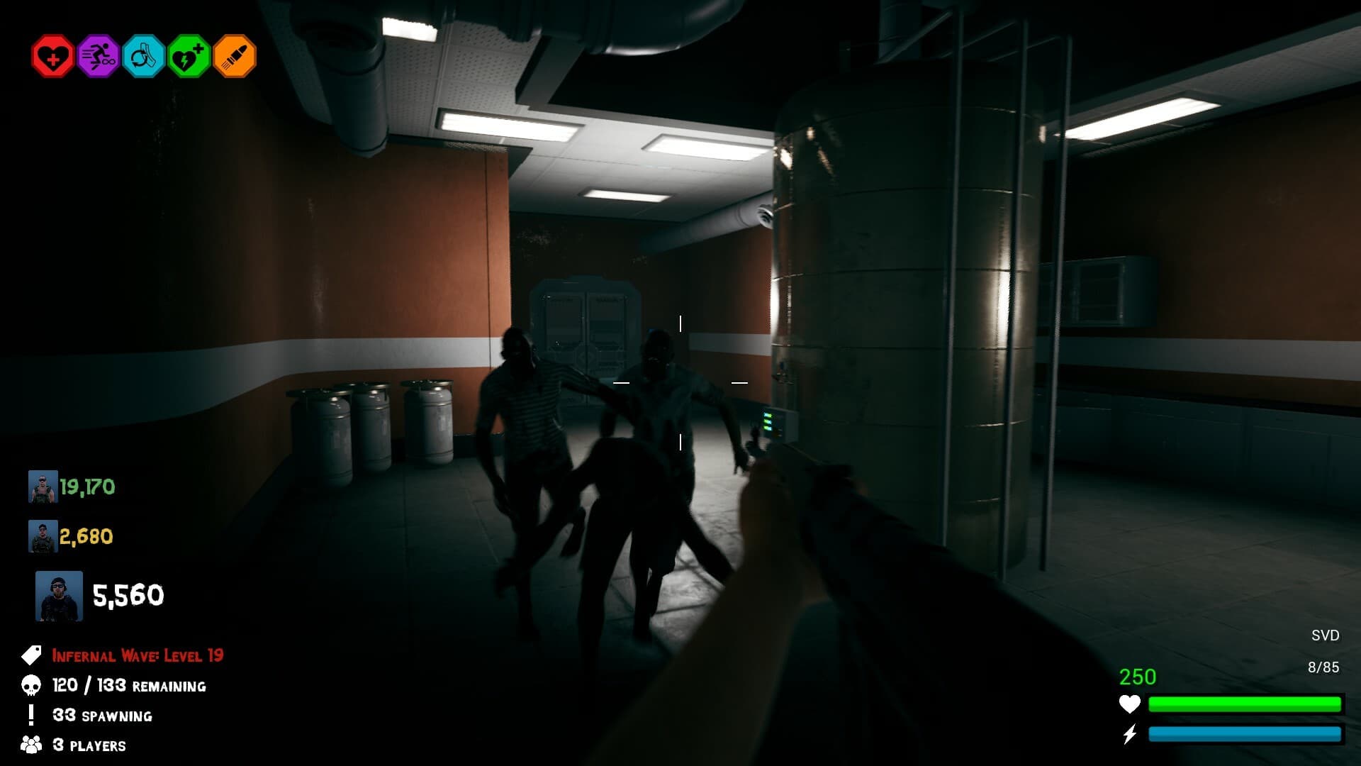 Infernal Wave is an intense cooperative survival shooter that pits a team of up to five players against endless waves of bloodthirsty zombies. As the last line of defense in a post-apocalyptic world, players must work together to strategize, survive, and annihilate hordes of the undead using an arsenal of firearms.