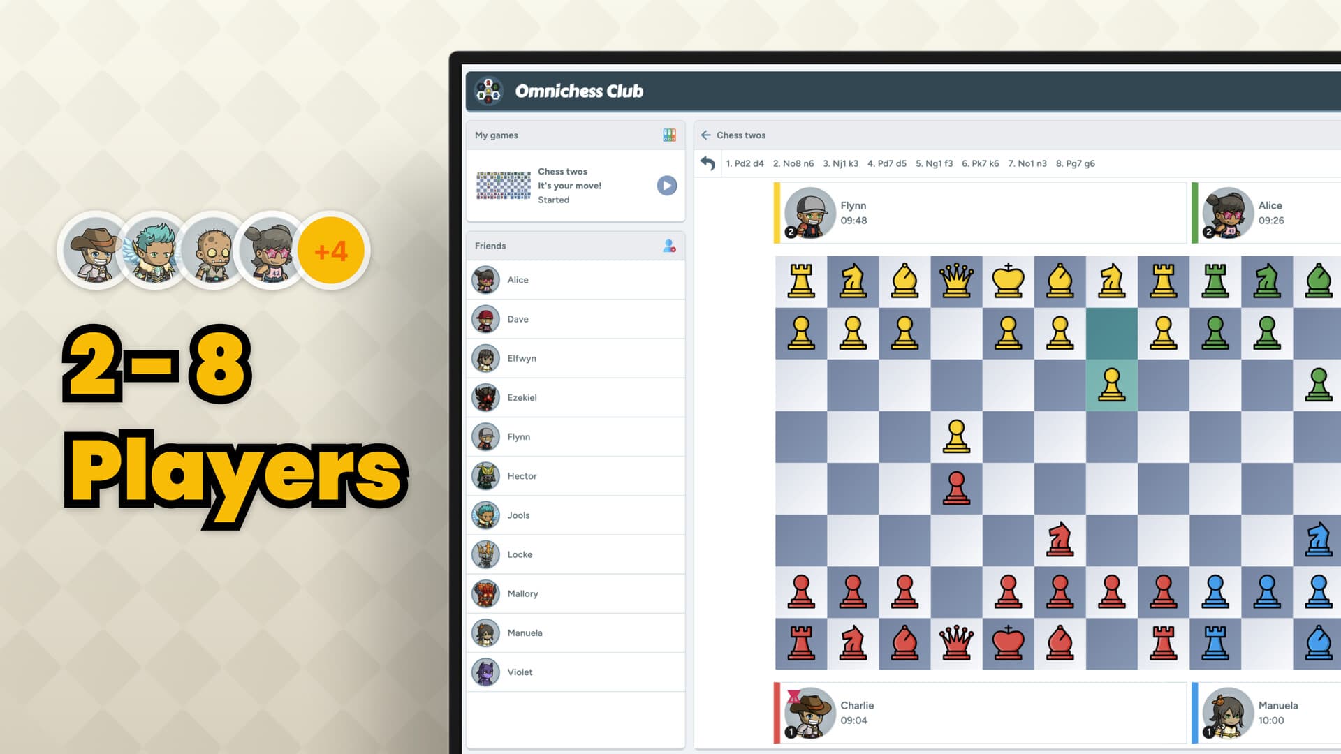 Omnichess is the game that allows you to design and play your very own chess variants! With AI and online play there are a huge variety of options: 2-8 players • Square, hexagonal, or triangular tiled boards • Rule alterations • Timer options • Customised pieces