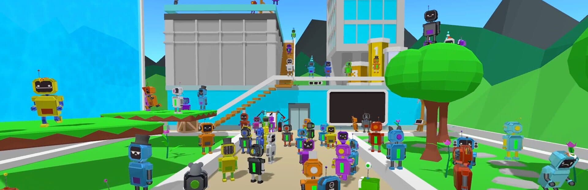 Party Bots is an online party game for up to 100 players. Compete in various minigames to level up your bot!