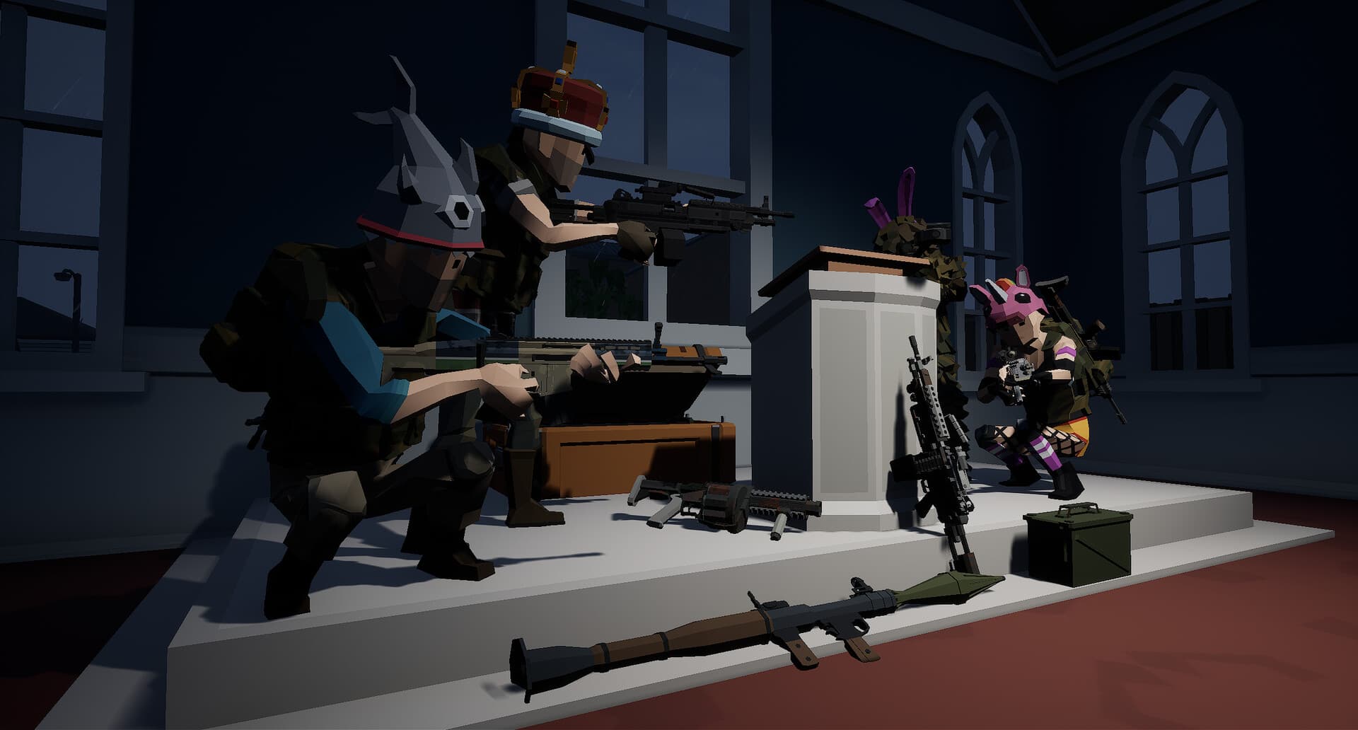 Jump, Land, Fight! Immerse yourself in the world of Battle Royale and Endless Deathmatch on diverse PolyRoyale maps. Whether you play solo, as a duo, or in a squad, you have a plethora of weapons at your disposal. However, in the end, only one can emerge as the victor! (Mini-Game)