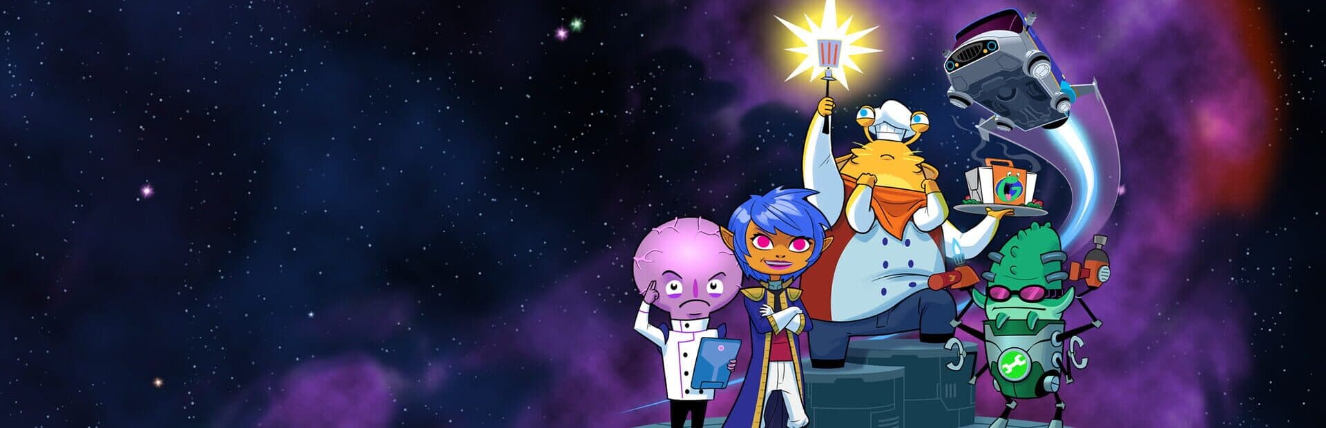 Your team's goal is to complete all of your recipe objectives, which means collecting ingredients, crafting each dish, and taking it to the planet that's craving it. Each of the four unique roles aboard your ship contribute in their own way, and they'll all need to work in concert to succeed! Just like on a real space food truck.