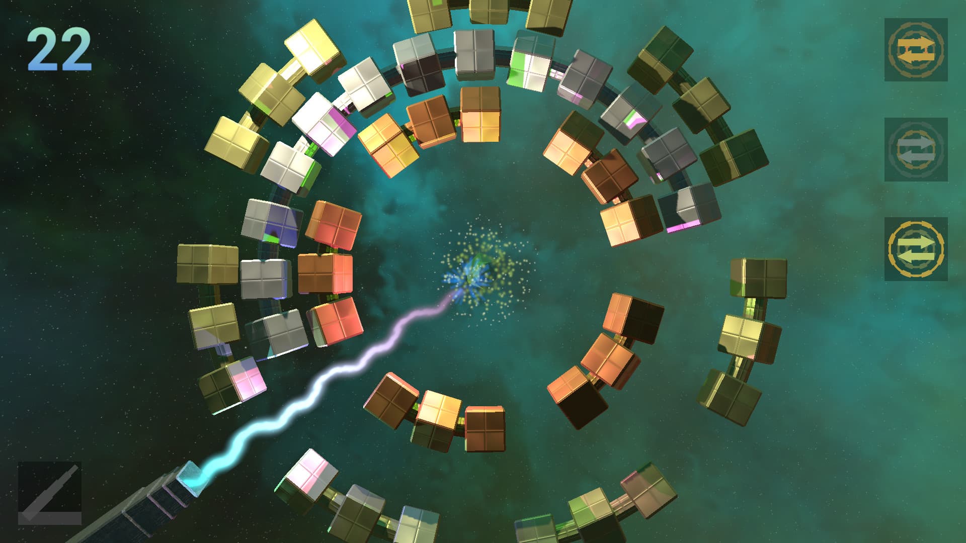 Your task is to steer the spinning circles using various control methods, such as halting, reversing and skipping forward, in order to find a clear path to fire at the plasma ball hiding at the center of the circles. Hit the plasma ball enough times before the time runs out to win the level. Failure to do so results in your cannon being instantly blown up in retaliation.