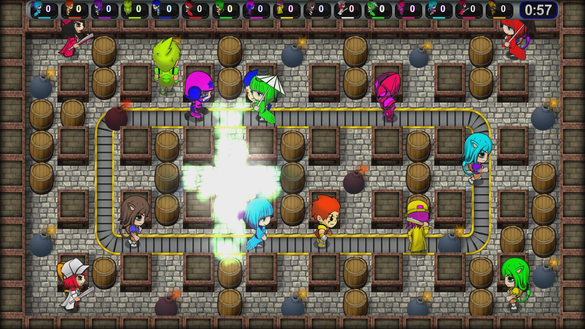 The classic couch competitive gameplay of games like Bomberman brought into the modern era. Place bombs, get out of the way, destroy your friends, collect power-ups, 'splode your way to victory in smooth multiplayer with virtually unlimited local and online players!
