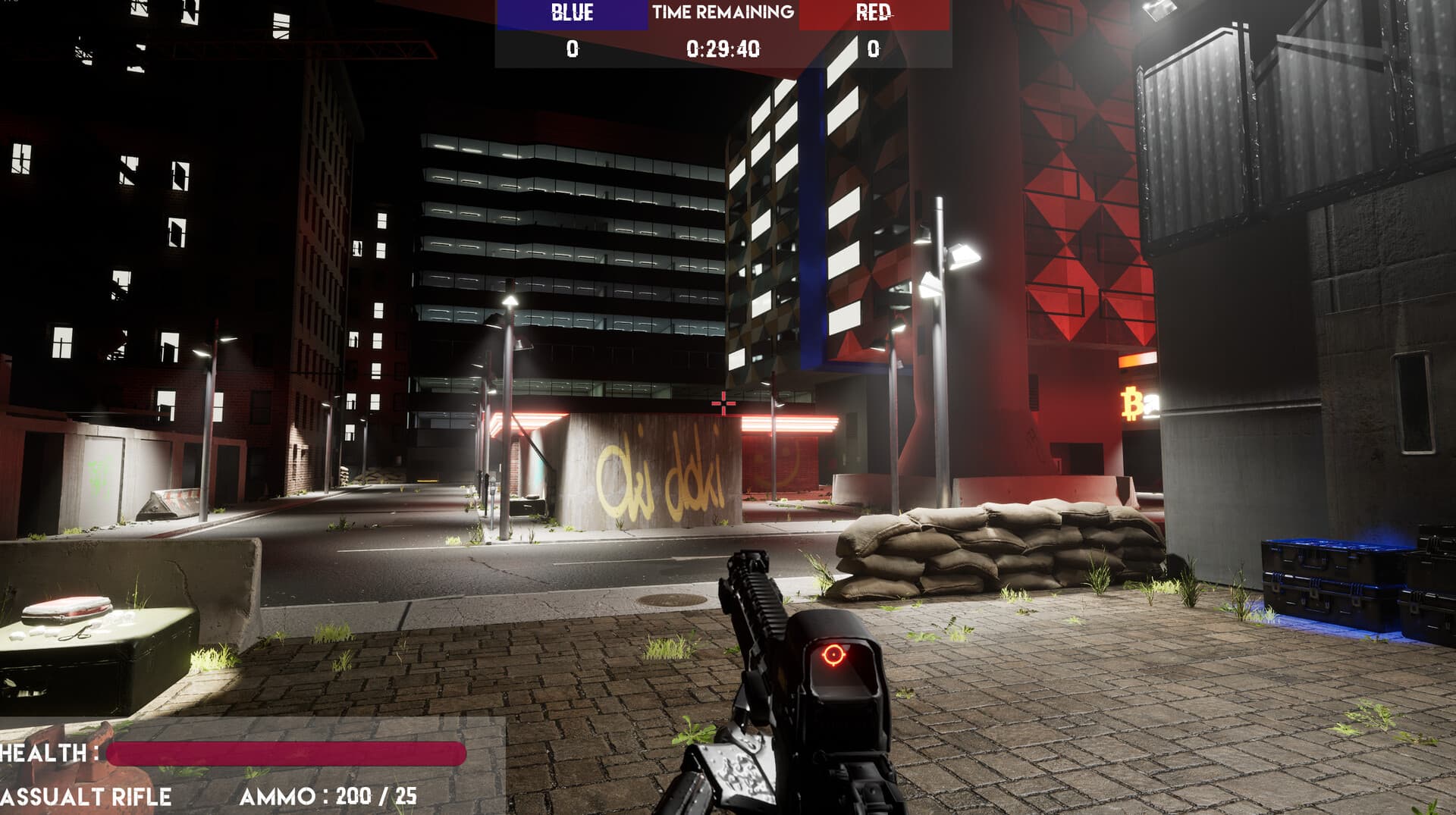 In multiplayer, you have access to two weapons: a machine gun and a grenade launcher. In deathmatch, you'll be competing with your team against another. It's particularly important to keep an eye on your ammo, as the enemy will show no mercy once you run out. If ammo is running low, you should quickly grab some new ammo from one of your team's ammo crates. And while you're at it, you can also heal yourself from a first aid kit.