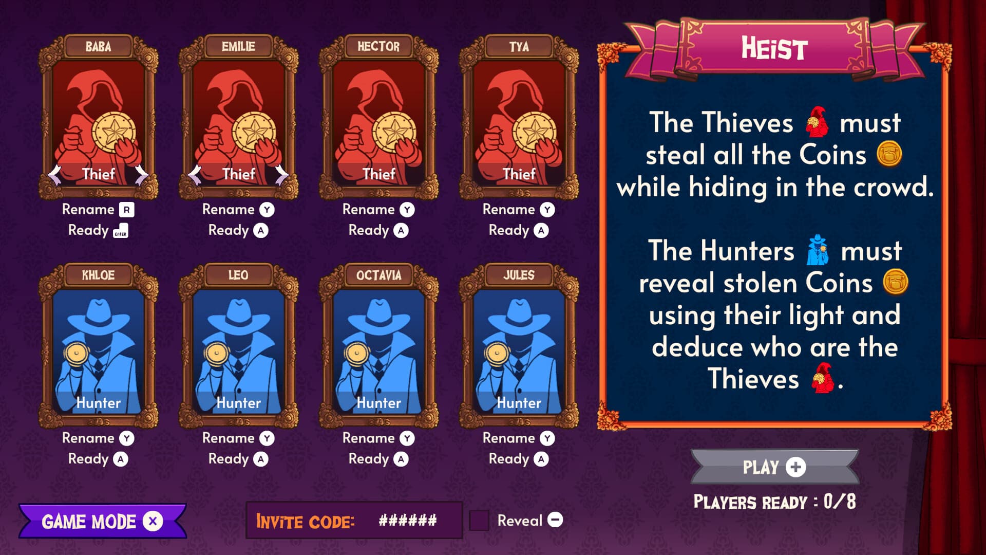 Where is Billy? is for 2 to 8 players, either locally or online. Easily connect to other lobbies or open your own to fill up the party and keep the fun going through the matchmaking system.