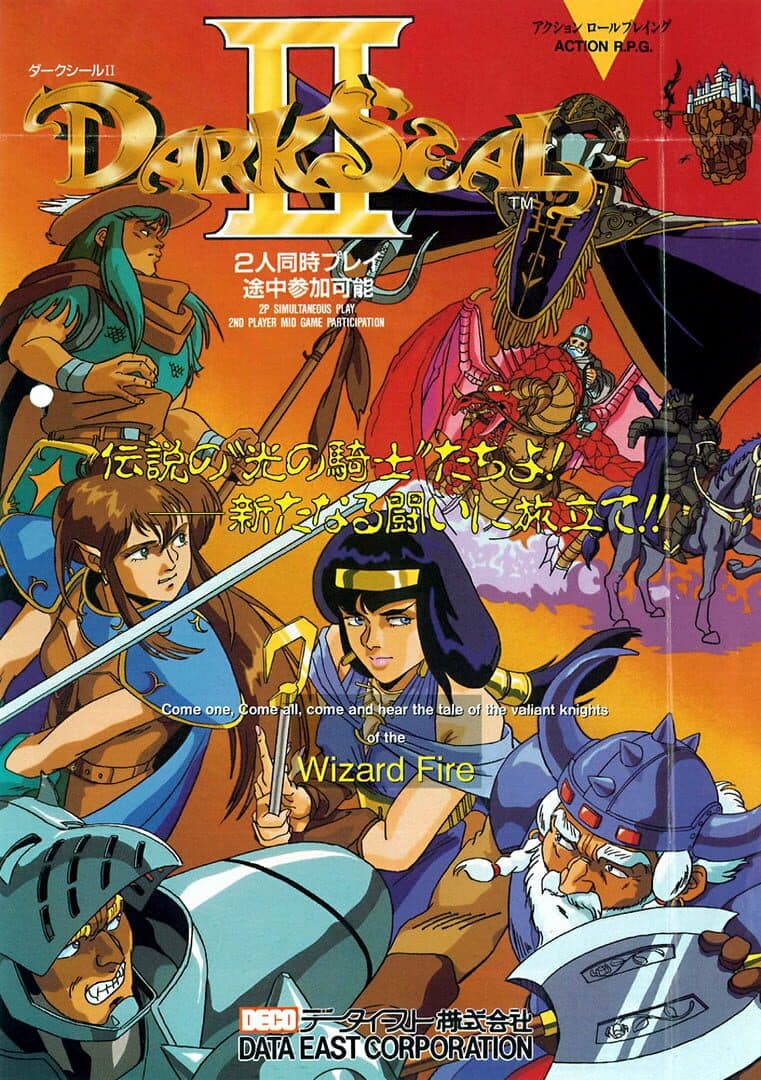 Wizard Fire was released in the US as such, although it is a direct sequel to Gate of Doom and Data East archives still refer to the game as Gate of Doom II. The series is known as Dark Seal in Japan. The class types to choose from are wizard, bard, knight, elf or dwarf. Each of the heroes has a unique standard attack, access to magic and one passive ability. The wizard does maximum magic damage, the bard is resistant to poison, the knight is immune to disease, the elf has increased mobility and the dwarf is resistant to confusion. Unlike the previous game, magic attacks are not unique to each class, though specific characters have a higher chance of using certain attacks. There is also the chance, for any class except the wizard, that the spell will fail and you will transform into a pig for a short time.