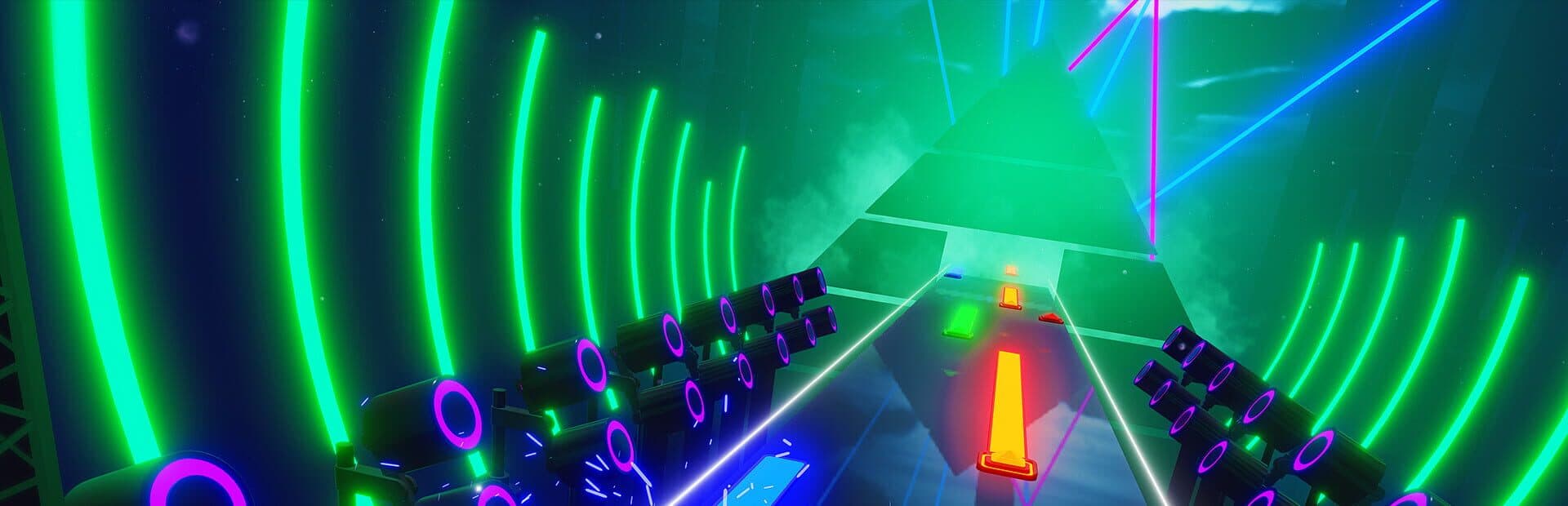 Shred your guitar or smash your drum set like a rockstar! Play the original soundtrack in dynamic stages, progress through the campaign to get new skins, or customize your experience with custom songs, gameplay modifiers, and multiple control schemas!